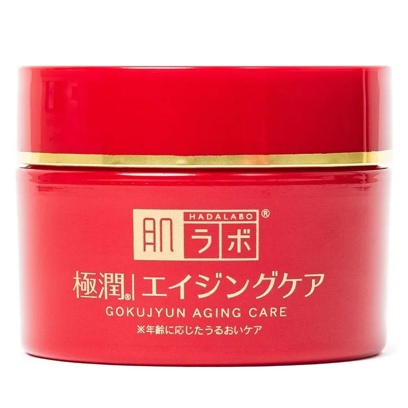 Para o combate à flacidez, os produtos japoneses priorizam texturas leves com alto teor de hidratação e estímulo de colágeno. O Hada Labo Gokujyun Alpha Lifting Cream representa bem essa abordagem ao reunir colágeno e ácido hialurônico em uma fórmula de rápida absorção que melhora a elasticidade sem pesar.